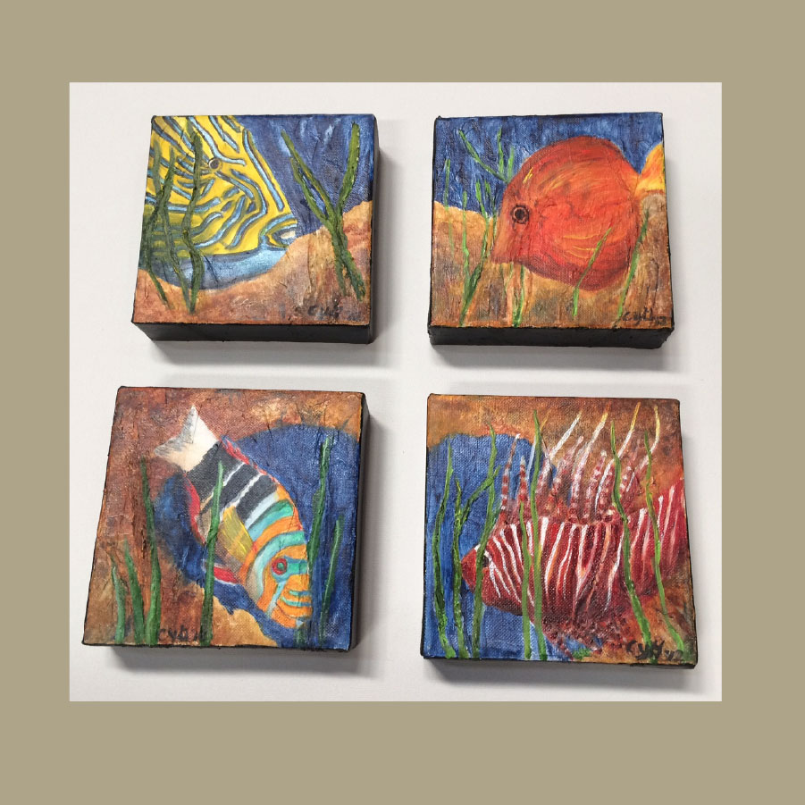 Artist name: Cynthia Guare Category: Acrylic on Canvas Size: 6 x 6 Price: $350 Shipping: $35 % to Charity: 30% Details: 4 – 6 x 6 Gallery wrapped canvas blocks (canvas has been pre-texturized for effect) 350.00 USD