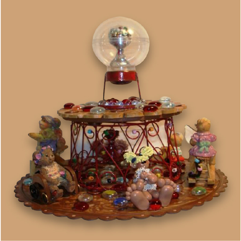 Artist name: DNA Original Art /Audrey Semprun and Debbie Smith Size: 10 x 12 % to Charity: 30% This carousel of whimsical characters is highlighted by bright colors and interesting figurines. The little teddy-girl in a wheelchair speaks of diversity and acceptance. NOTE: All items that DNA Original Art create are One of a Kind (OOAK) creations that will never be duplicated and are signed and dated with a © clearly placed. 87.99 USD