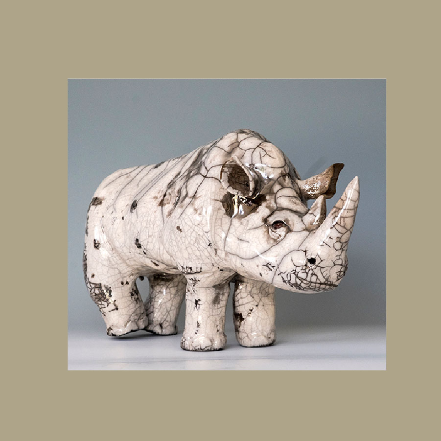 Artist - Josephine Lai Medium - Clay/Pottery Size – 13" long X 7" high Price - $250 Shipping - $40 USPS retail ground (domestic US) Style # - % to Charity - 30% Details: Hand built, reduction fired earthenware form (Raku). The survival of the rhinos remains critically threatened. 250.00 USD