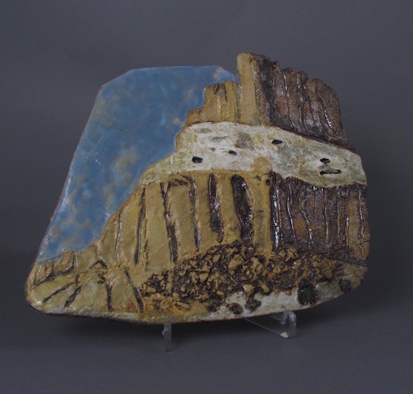 Artist - Eileen G. Gorman Medium - Ceramics Size –10.5 in. h x 14 in. w x 1 in. d Price - $120.00 Shipping - $130.00 ground transportation Style # -EGGSandBluff01 % to Charity - 30% Details: Wall plaque High fire stoneware, fired in oxidation Decorated with slips, engobes, and glazes 120.00 USD