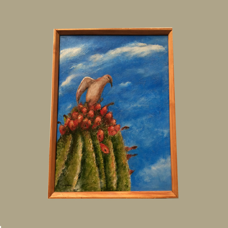 A lifetime of fine art training and a degree in Graphic Design and Advertising Art gave me a solid base from which I’ve branched out in many directions. As a graphic designer for the Muscular Dystrophy Assn. (in their corporate headquarters), I gained experience in the publishing and print world. Taking that knowledge into the freelance world, I have translated that into the creation of many works including logos, marketing materials, books and catalogs. I have also studied cloud painting and wall texturing. As part of my ongoing quest to learn and add to my artist practice, I attended two unique decorative painting workshops in Italy under the tutelage of 4 world class decorative painters which gave me the skills to add faux finishes such as marbeling and fresco to the list of techniques that I have to offer in my artwork and murals.  Whether I am drawing from my experiences and observations of the Sonoran Desert or utilizing the techniques that I studied abroad; each of my pieces represents my unique experiences in life, travel and study.