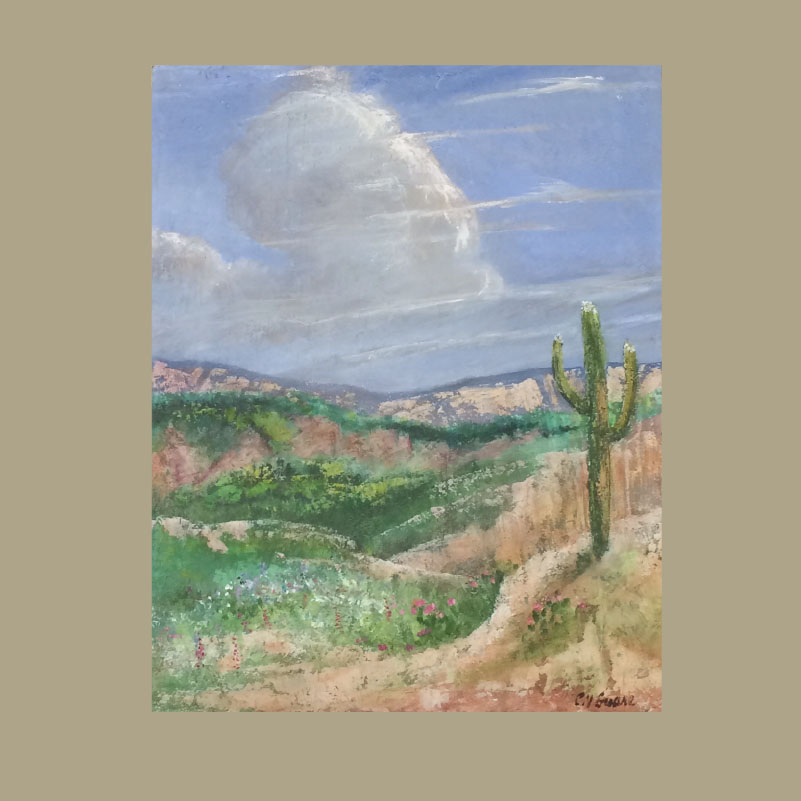 A lifetime of fine art training and a degree in Graphic Design and Advertising Art gave me a solid base from which I’ve branched out in many directions. As a graphic designer for the Muscular Dystrophy Assn. (in their corporate headquarters), I gained experience in the publishing and print world. Taking that knowledge into the freelance world, I have translated that into the creation of many works including logos, marketing materials, books and catalogs. I have also studied cloud painting and wall texturing. As part of my ongoing quest to learn and add to my artist practice, I attended two unique decorative painting workshops in Italy under the tutelage of 4 world class decorative painters which gave me the skills to add faux finishes such as marbeling and fresco to the list of techniques that I have to offer in my artwork and murals. Whether I am drawing from my experiences and observations of the Sonoran Desert or utilizing the techniques that I studied abroad; each of my pieces represents my unique experiences in life, travel and study.
