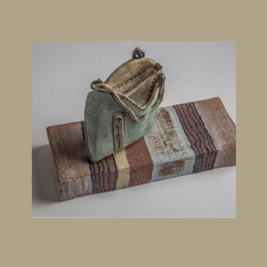 Clay piece. The body of Lilly’s clay work “Voices and Purses” focuses on the depictions of the elements of daily living that are part of women human journey. Her current work is based on her experiences as daughter of first generation immigrants. Her purses are representations of women’s’ individual and collective voices in the community. They are records of women determination and survival capabilities.